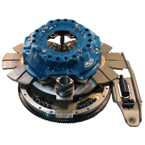 Featuring a lever type pressure plate, six ceramic buttons per side, and a 3600 pound plate load, this clutch is ideal for drag racing and a fast street truck. All of the clutch components are made of steel for superior strength under most situations. The center plate is lugged to fit the bronze/feramic inserted flywheel. Capable of holding up to 850 horsepower and 1400 foot pounds of torque, it is possible to daily drive with this clutch, but due to the 3600 pound plate load, we wouldn't recommend it for a truck that does considerable stop and go unless you are Hercules.